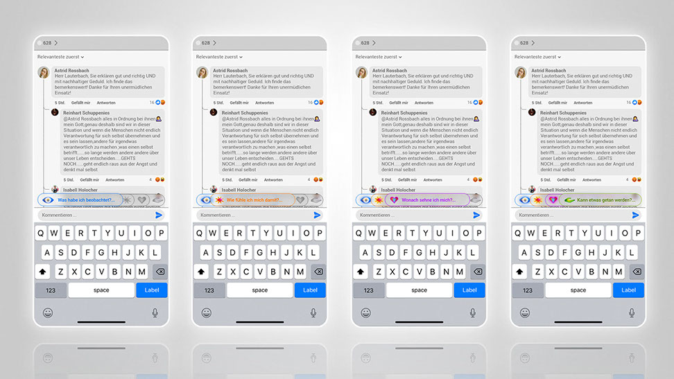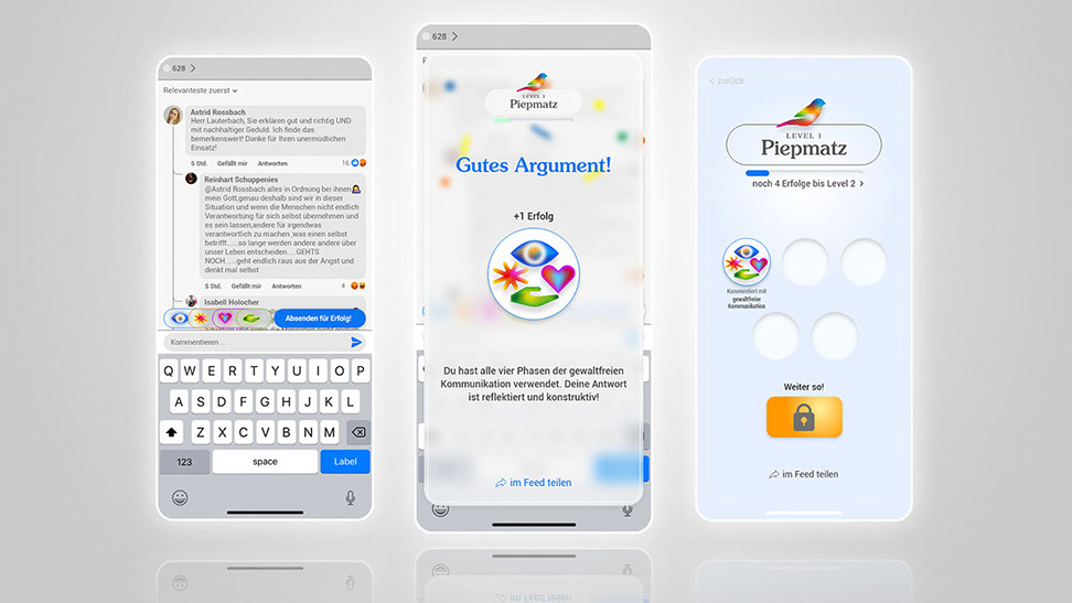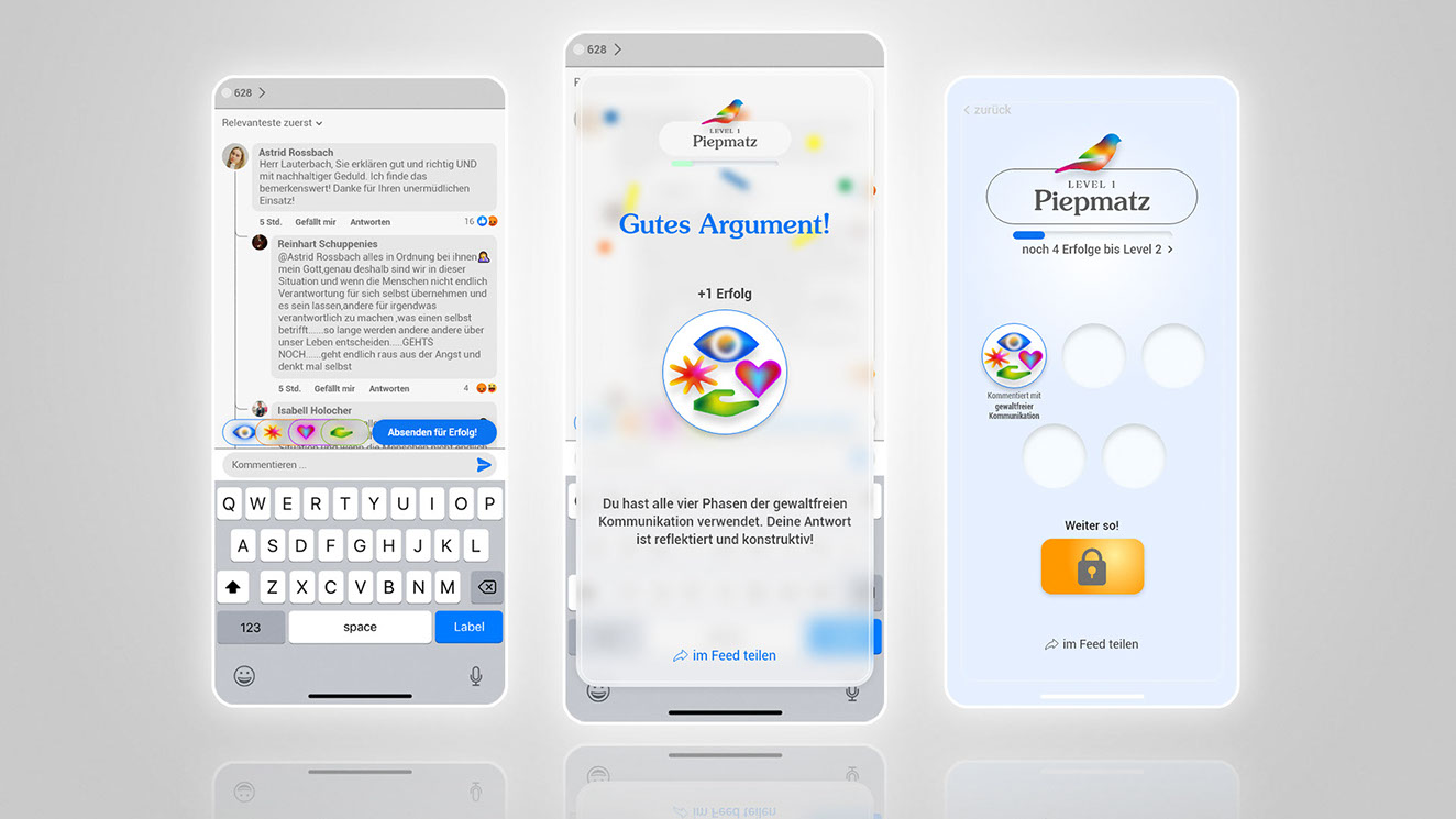 The effectiveness of the NVC technique in a social media context has been confirmed by putting the concept to test within the potential target audience in form of a digital minimal viable prototype (MVPr). Participants were asked to respond to provocative posts in realistic comment column scenarios. First in a comparison round and then using the social media prototype. Results indicated a shift towards more emphatic and deescalating behaviour.